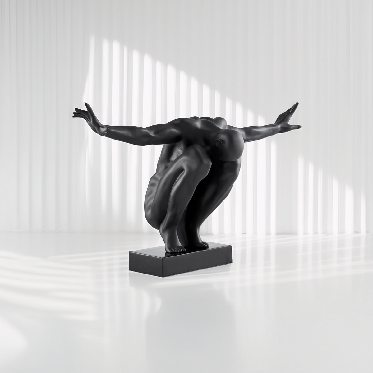 Atletik figürün soyut ve dinamik yorumu. Hareket, güç ve enerji teması.