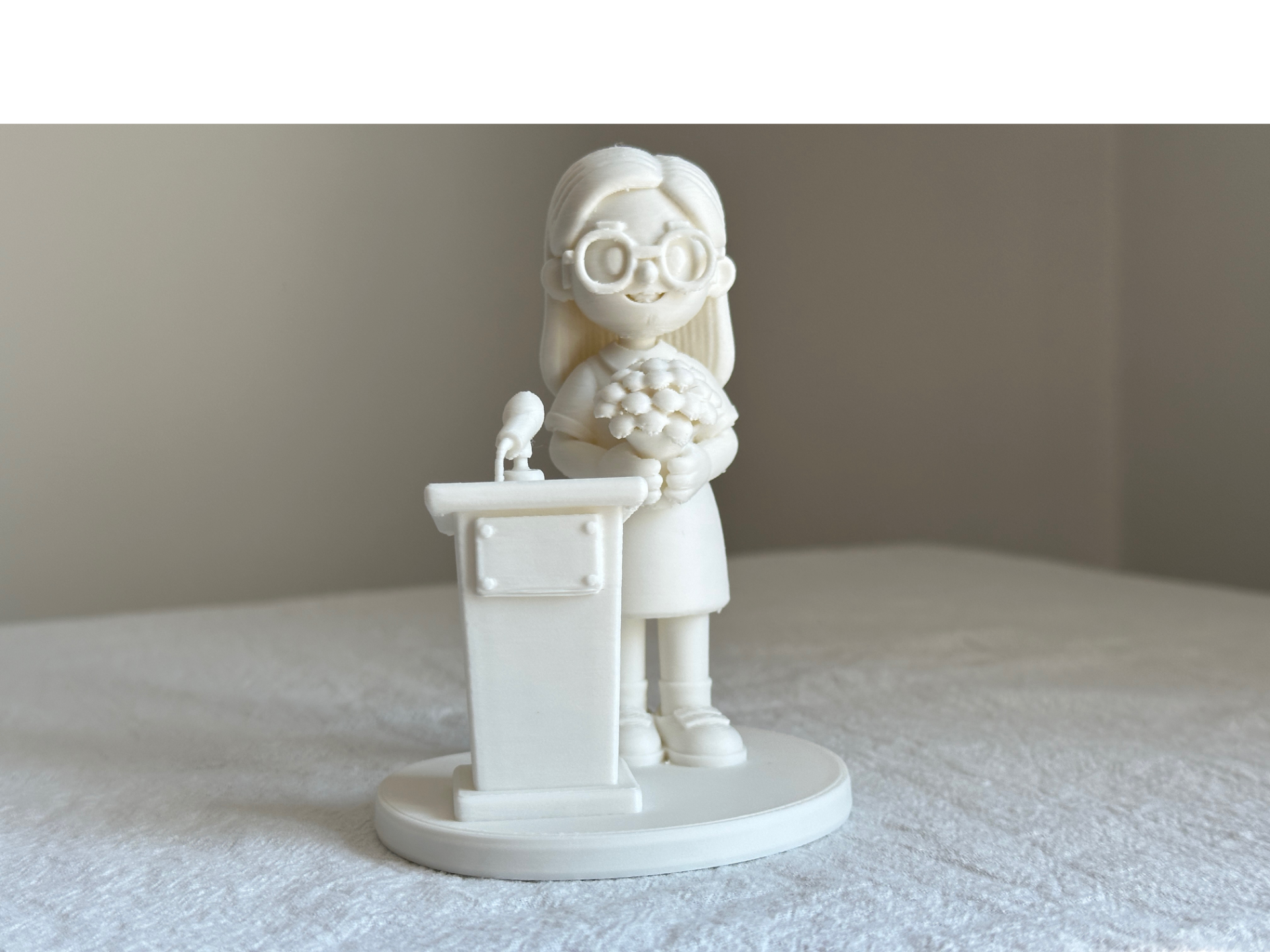 Kürsüde duran gözlüklü bayan öğretmen figürü ile tasarlanmış bu sevimli ürün, öğretmenlerin bilgi aktarma misyonunu ve eğitim aşkını simgeler. 24 Kasım Öğretmenler Günü için özel olarak hazırlanmış bu anlamlı tasarım, bayan öğretmenlerinize harika bir hediye seçeneğidir.