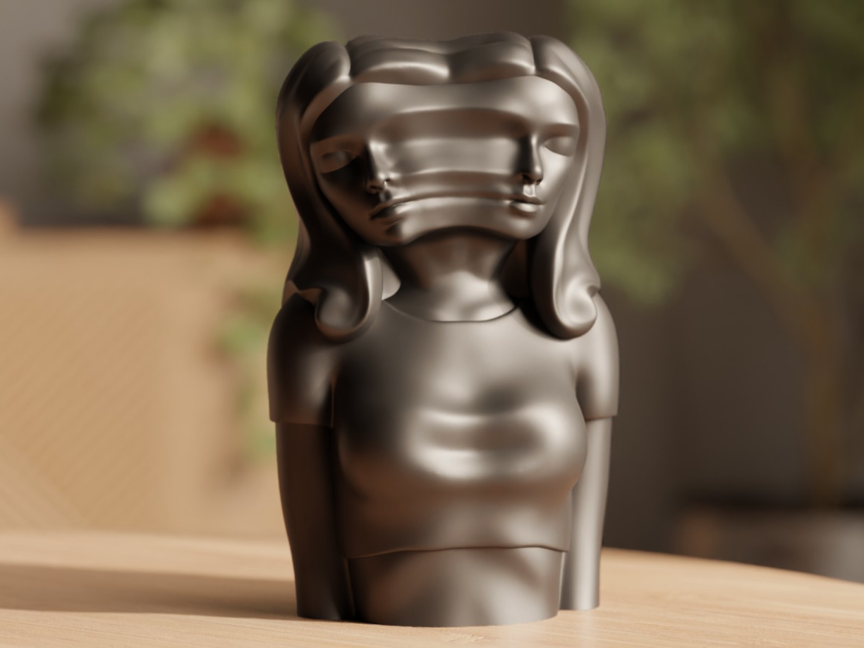 Rüya ve gerçeklik arasındaki bulanık çizgiyi temsil eden sürreal kız heykeli. Gizemli ve etkileyici tasarım.