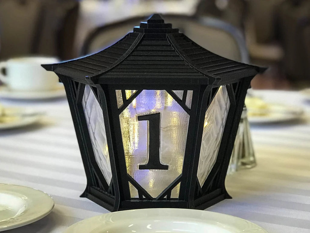 Hem masa numarası hem dekoratif aydınlatma! LED ışıklı fener tasarımıyla düğün masalarınızı aydınlatın.