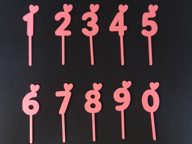Kalpli numaralar pasta süsü renk seçenekleri ile. PLA malzemeden üretilen bu sevimli pasta dekorasyonu, yaş numaralarını kalp şeklinde sunarak doğum günü pastalarına özel bir dokunuş katacak. Çeşitli renk seçenekleri mevcuttur. 0 ile 9 arası tam set olarak toplam 10 adet sayı gönderilir.