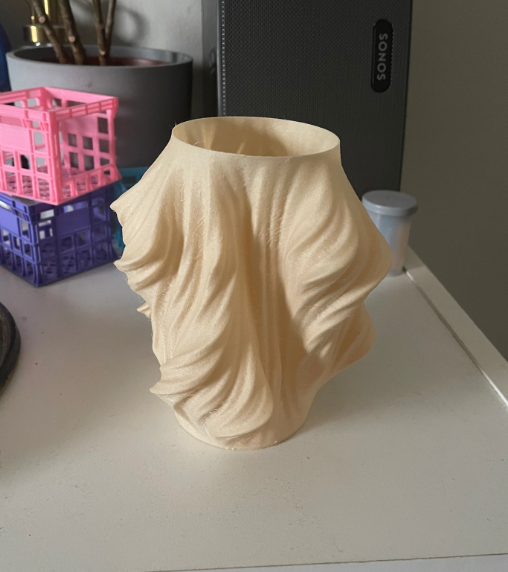 Özel 3D baskı teknolojisi ile üretilen bu etkileyici kumaş görünümlü vazo, tekstil dokusunun zarafetini seramik formla buluşturuyor. Gerçek kumaş hissini veren detaylı yüzey işlemi ile benzersiz bir görünüm sunar.