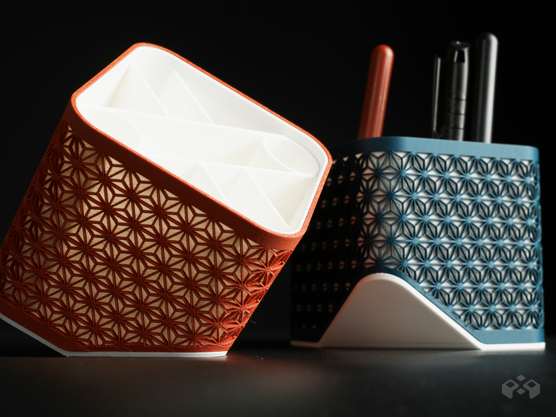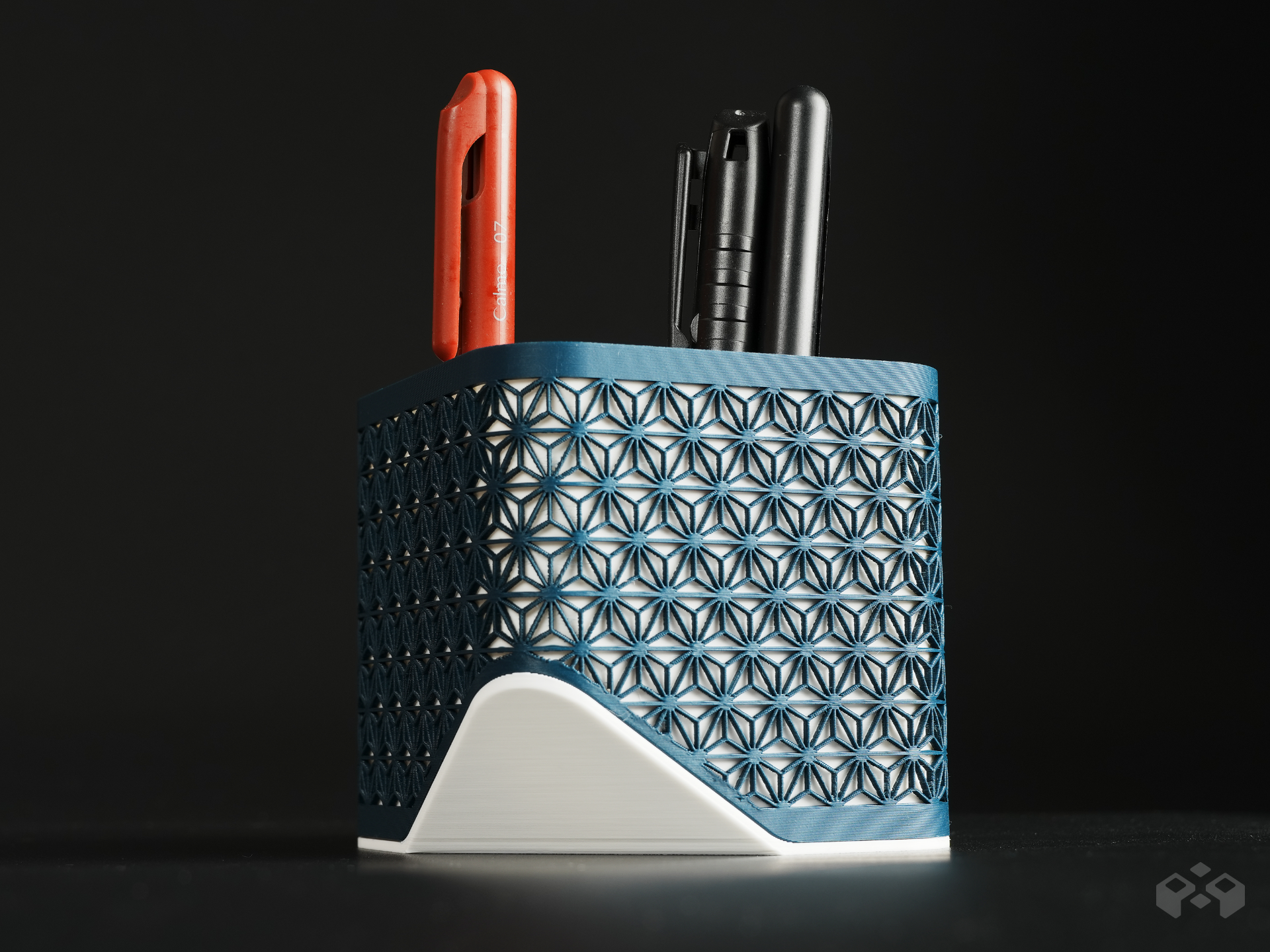 Modern ve şık tasarımıyla ofis masanızı süsleyen motif desenli kalemlik. Mavi ve beyaz renklerin uyumlu kombinasyonuyla üretilen bu PLA kalemlik, geometrik yıldız deseniyle dikkat çekiyor. Kalem, kalemtıraş, makas ve diğer ofis malzemelerinizi düzenli bir şekilde saklamanıza yardımcı olur. Geniş iç hacmi sayesinde birçok kalemi aynı anda barındırabilir.