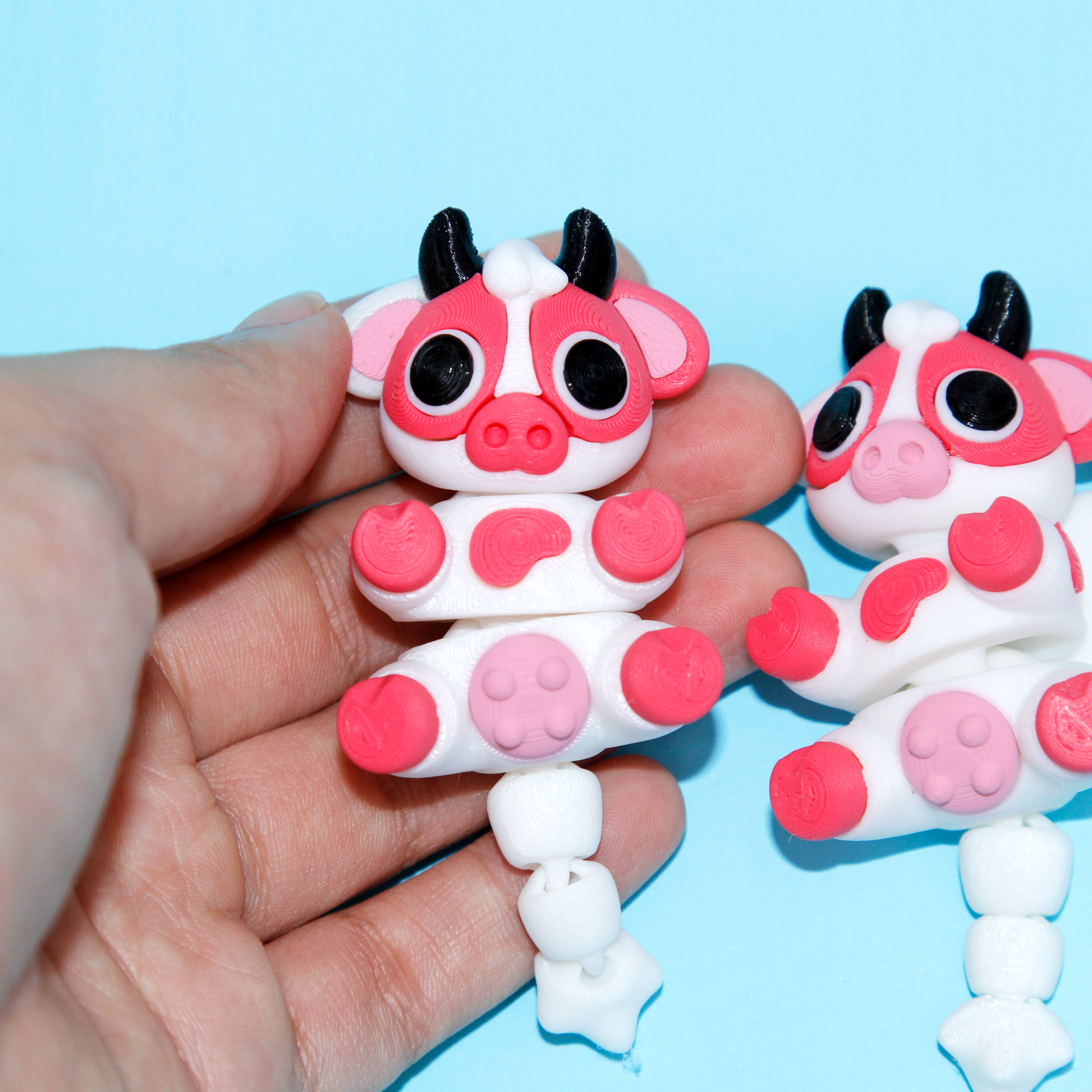 Özel 3D baskı teknolojisi ile üretilen bu sevimli inek oyuncağı, çocukların hayal dünyasını renklendiriyor. Eklemli tasarımı ile hareket ettirilebilen bu şirin karakter, güvenli PLA malzemeden üretilmiştir.