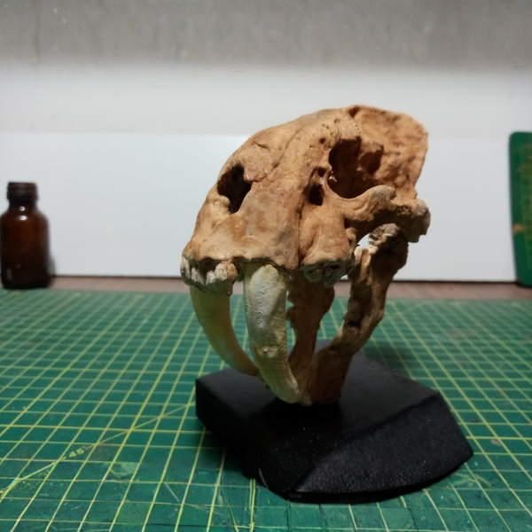 Prehistorik dönemden kalma gibi görünen sivri dişli kafatası modeli. Gerçekçi kemik dokusu ve detaylı diş yapısı ile 25cm boyutunda PLA malzemeden üretilen bu figür, paleontoloji ve doğa tarihi severlerin ilgisini çekiyor. Siyah kaide ile birlikte sunulan bu eğitici ve dekoratif parça.